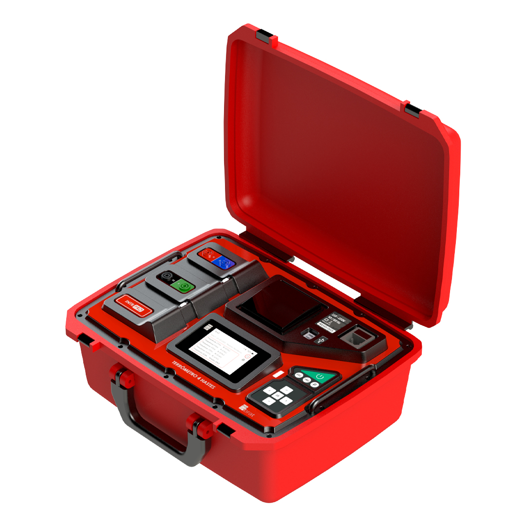 O INTR4 PRO – Terrômetro de 4 Hastes Digital utilizado para medir a resistência do solo, sendo essencial para verificar a eficiência de um sistema de aterramento. Ele funciona injetando uma corrente no solo e medindo a queda de tensão resultante, calculando a capacidade do solo em dissipar a corrente elétrica. É um equipamento sensível e de uso profissional, fundamental em instalações elétricas para garantir a segurança de pessoas e equipamentos. É um equipamento portátil e de fácil manuseio, fabricado pela Inbrat 100% Nacional, conta com Impressora, Software Desktop e App Mobile para controle a longa distância.